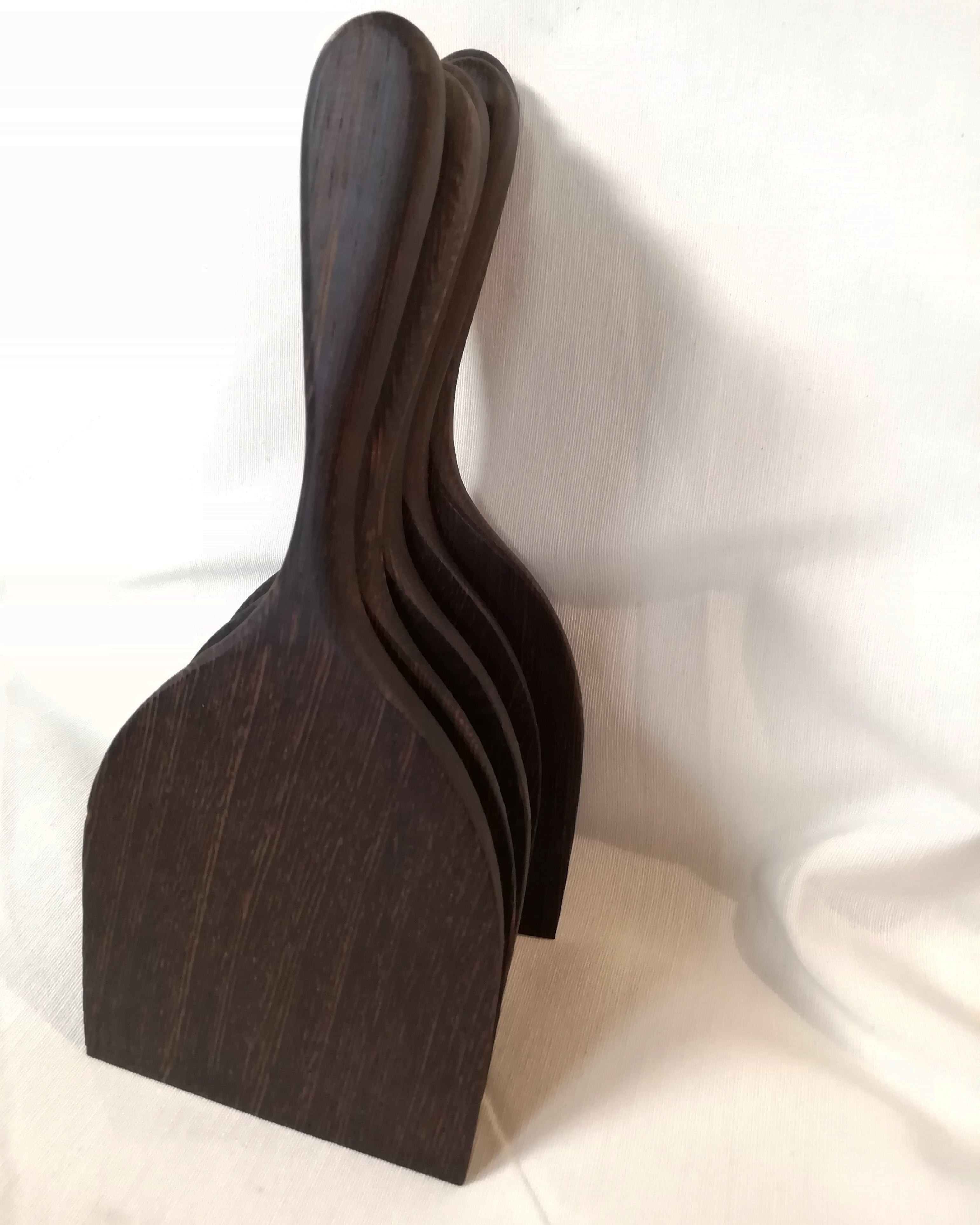 Cette spatule est en bois brut, une finition huilée (huile végétale) est utilisée pour garder l’éclat du bois et pour le protéger.